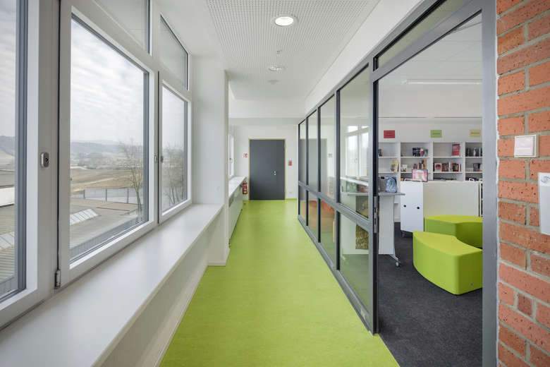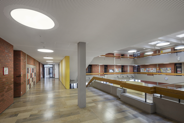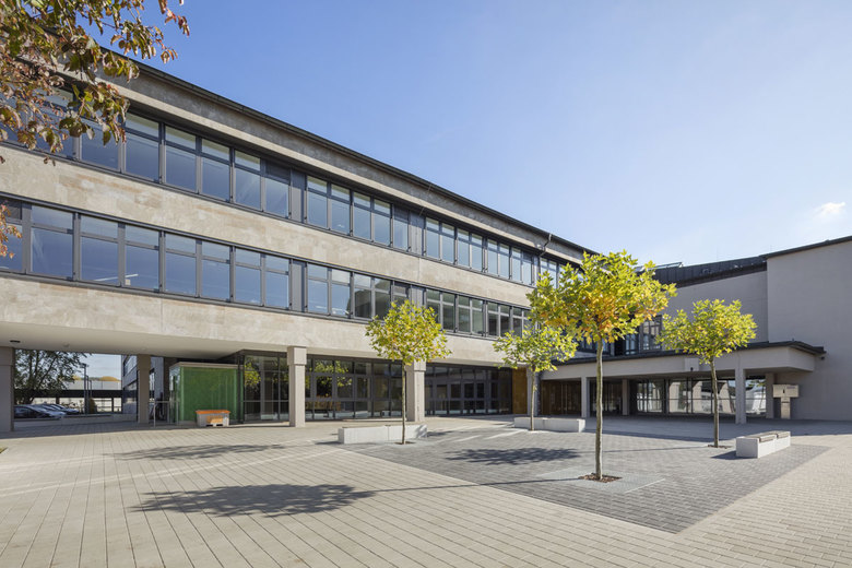Die Realschule Forchheim gilt als typisches Beispiel für Schulbauten Anfang der 70er Jahre mit Sichtbeton sowie einer ansprechenden Natursteinverkleidung. Bei der energetischen Sanierung lag die Herausforderung darin, die unter Urheberrecht des Architekten stehende Fassade energetisch zu ertüchtigen und gleichzeitig die gebäudespezifischen Eigenheiten zu wahren. Um die Schule auf heutigen Energetischen Standard zu bringen, wurde die gesamte Fassade mit einer diffusionsoffenen Innendämmung versehen. Wie bei fast allen Bauten dieses Typs entsprach der Brandschutz nicht mehr den heutigen Anforderungen. Hauptaugenmerk lag dabei auf der Sicherung der Fluchtwegsituation in der über drei Geschosse offenen Aula. Das bisherige Lichthofareal wurde zur Schaffung weiterer Schulräume genutzt: In den vorhandenen freien, aber überdachten Innenbereich wurden zwei Geschossdecken eingezogen. Eine komplett erneuerte Sanitäranlage, der Neuaufbau der Wärmeverteilung sowie die Aufrüstung der grundlegenden Elektrotechnik bringen die Georg-Hartmann-Realschule auf das Level einer modernen und gut ausgestatteten Schule, die ihren Schülern nun beste Lernbedingungen bietet.