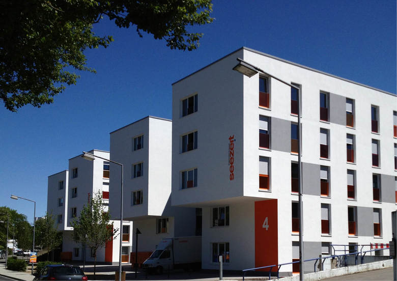 Das Seezeit Studentenwerk Bodensee AöR beabsichtigt den Neubau eines Studentenwohnheims mit 232 Bewohnerplätzen im Bereich Sonnenbühl nahe dem Uni-Campus als Ersatz für eine im Frühjahr 2010 abgerissene Wohnanlage. Das neue Studentenwohnheim gliedert sich in insgesamt 4 Gebäuderiegel, die sich terrassenartig abgetreppt in die Hangtopographie hineinschieben. Jeweils zwei dieser Gebäuderiegel werden gemeinsam über ein offenes Laubengangsystem erschlossen. Die Wohnbereiche sind in 3er und 4er Wohngemeinschaften mit jeweils eigenem Bad und Küchenbereich gegliedert, jedes einzelne Studentenzimmer wird mit geschosshohen Fenstern - mit farbiger Glasbrüstung - für ausreichend natürliche Belichtung und Belüftung ausgestattet. Für die Gebäudeausführung ist eine nachhaltige KfW 70 Bauweise inkl. Dachbegrünung festgelegt. Das energetische Konzept basiert auf einen Nahwärmeverbund mit der benachbarten Studentenwohnanlage Sonnenbühl West II. Dabei wird im Blockheizkraftwerk (Grundlast) im redundanten Verbund mit einer Gastherme (Spitzenlast) eingesetzt.