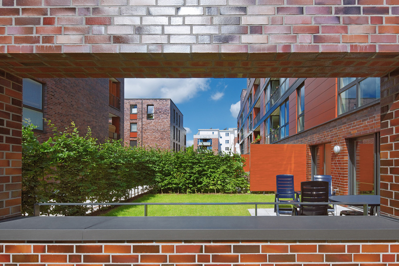 Durch die Lage im Blockinnenbereich wird der Verkehrslärm der umliegenden Straßen wirkungsvoll abgeschirmt. Der im Norden gelegene Quartiersplatz dient als Zentrum und Treffpunkt des Quartiers. Die städtebauliche Struktur gliedert sich in vier Cluster, die mit Stadthäusern und Mehrfamilienhäusern bebaut sind. Durch die Anordnung der Gebäude entsteht eine differenzierte Abfolge von öffentlichen, halböffentlichen und privaten Räumen. Der ruhende Verkehr wird teilweise in einer Tiefgarage organisiert.