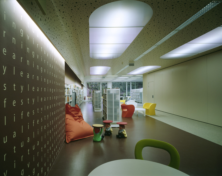Sculpted staircases follow along the bended glazed façades. Lecture halls and the different departments with their laboratories and offices are located in the upper floors.