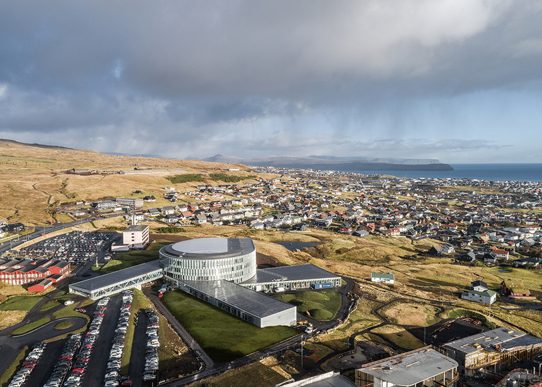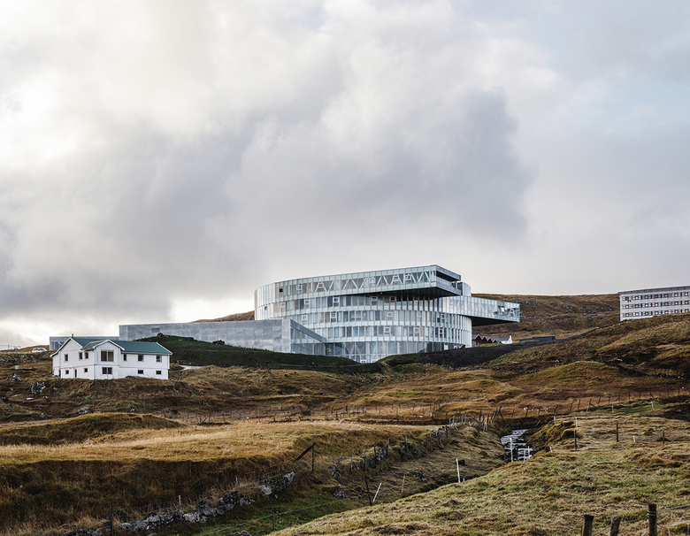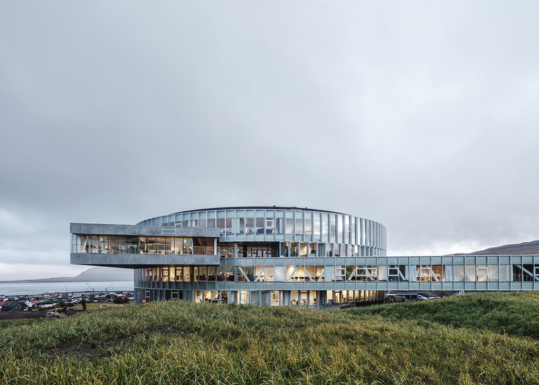 Located on the undulating fjords of Faroe Islands, with views to the capital Tórshavn, the sea and verdant fells, Glasir seeks to harvest the efficiencies of combining Faroe Islands Gymnasium, Tórshavn Technical College and the Business College of Faroe Islands into one building for over 1,750 students, teachers and staff.