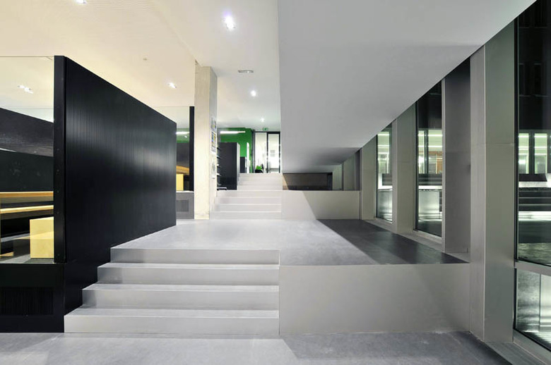 Building schools means building the future, as youngsters will assimilate and pass on their spatial experience of light, air, simplicity and beauty throughout their lives. The designers were honoured to have the opportunity to deliver creative social impulses of this kind. Following several earlier ‘trial runs’ in the centre of Mortsel (merger of three primary schools), central Antwerp (UIA) and Gasthuisberg hospital in Leuven (midwifery), this fourth winning competition design for a school building is the most expressive to date. It stands out primarily for its unusual context, solitary infill and specific parameters. Within the outlines of the master plan – parallel to the future linear park and in relation to the arrangement of the volumes – an ascending staircase with central patio follows the town’s natural undulation. This beacon on Kantienberg hill in Ghent functions as a brick sculpture, incorporating the entrance and the media library, and supported to the rear by a tower. Vertically rotating aluminium plates enclose the tower in a discreet packaging. The ‘living’ walls with their constantly changing appearance are oriented towards the city, flirting with the transparency of the tower volume and creating a variety of daytime and night-time atmospheres in the Ghent skyline.