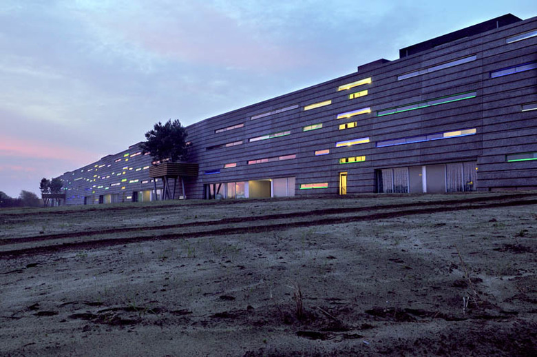 Boschkens Goirle has been realized between the A58 and the lush forests of Goirle. The fast and loud traffic of the highway are in stark contrast to the peace and quiet of the neighbouring woods. Thanks to a very special solution in the landscape the location is shielded soundproof from the highway. A 720m long residential wall stands as a knife in the landscape, creating a pleasant living environment for a new community with a view on a piece of untouched nature.