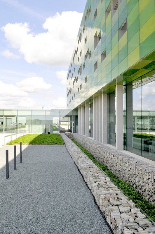 A total concept was designed for both the buildings and their outdoor surroundings in order to connect all the functions on the extensive grounds of approx. 34,000 m² to each other. The total of infrastructure and surroundings provides structure and acts as a binding element between the different zones in the grounds.