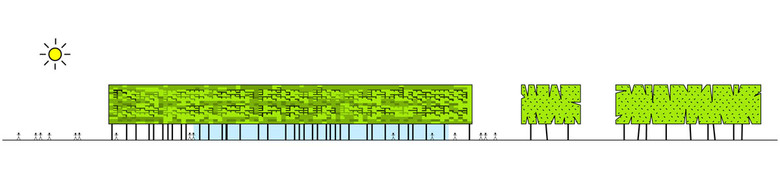 Our characteristic ecological and sustainable values were given expression in this project by using a metaphor for a forest in which a host of slender concrete trunks were topped with a broad green ‘crown’.