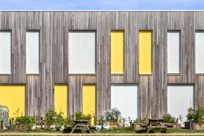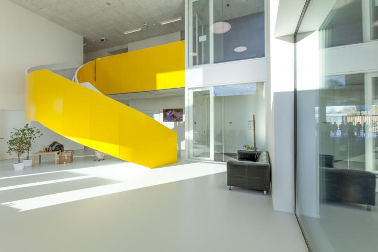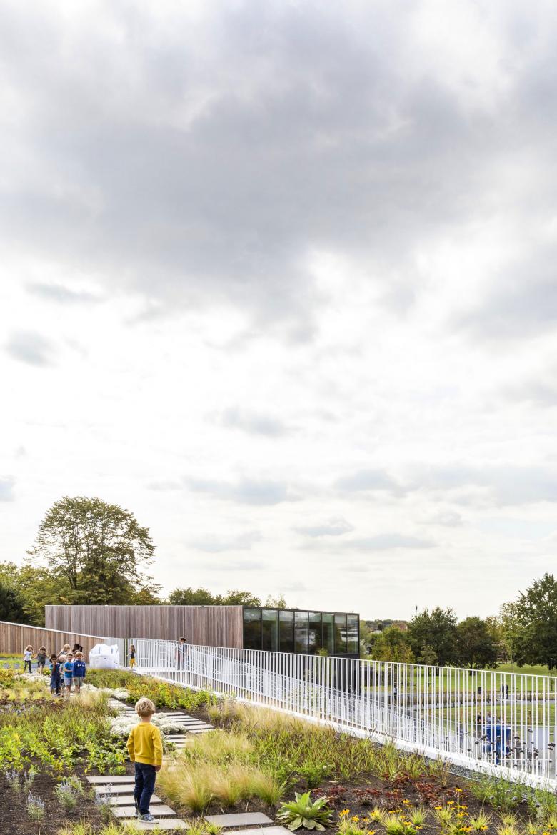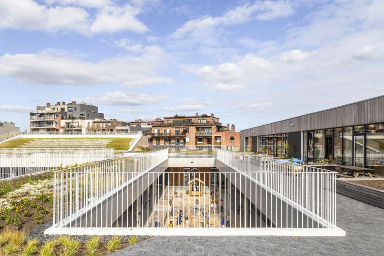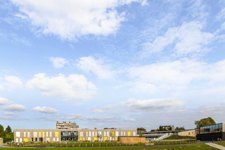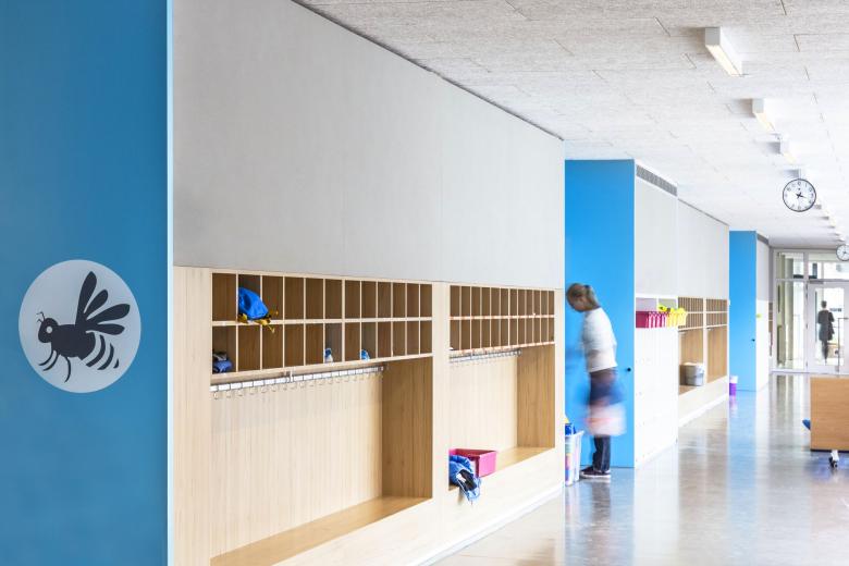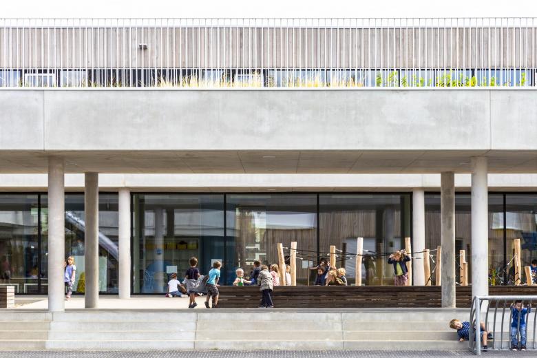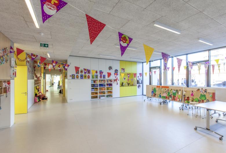 The new school accommodates around 650 pupils: 18 primary school classes and 12 kindergarten classes. The school building programme includes 6,345 m², of which 5,287 m² for the schools and 1,058 m² for the sports hall.