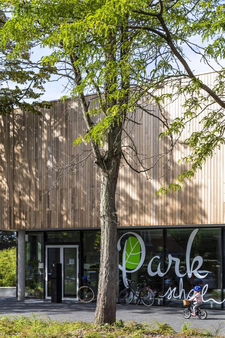 The new campus in the ‘Oude God’ park area in Mortsel accommodates the three existing urban primary schools and kindergartens from the immediate vicinity. The new school complex needs to be a sustainable, energy-efficient building offering cultural and social added value.