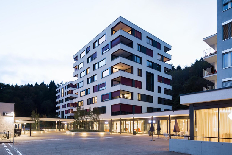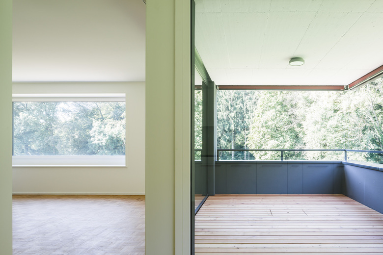 Alle Wohnungen sind von gleichwertiger Qualität und partizipieren an der attraktiven inneren Erschliessung, die durch zweigeschossige Wintergärten und Aufenthaltsnischen geprägt wird. Die modulare Struktur bietet maximale Freiheiten beim Wohnungsmix, wobei auch die kleinste Einheit über die Qualität des Übereck-orientierten Wohnen-Essen-Kochen verfügt. In Kombination mit der hohen Flächeneffizienz und Kompaktheit wird so die Grundlage für kosteneffiziente Alterswohnungen im Minergie-Standard geschaffen.