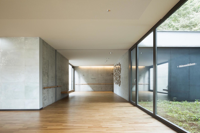 Die Neubauten setzen die orthogonale Struktur des Bestandes auf sinnfällige Weise fort und schaffen in zwei Etappen ein harmonisches Gesamt-Ensemble. Footprint, Situierung und Höhe der Neubauten sind präzise austariert, um eine hohe Durchlässigkeit, grosszügige Ausblicke und gute Integration zu gewährleisten. Die Vorfahrt zum Alterszentrum ist als übersichtlicher und repräsentativer Haupteingang gestaltet, der den Auftakt für die attraktive Durchwegung Richtung Wald bildet. Tanzende Pflanzeninseln auf homogener Grundfläche bilden die innere Ordnung und identitätsstiftenden Merkmale des neuen Kehlhofes.