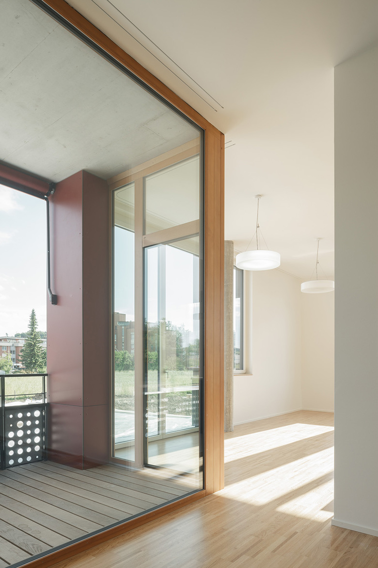 Die Architektur vermittelt zwischen den unterschiedlichen Bedürfnissen der zukünftigen Bewohner. Eine klare Aufteilung in öffentliche und private Bereiche garantiert Privatheit und Rückzugsmöglichkeiten, während gleichzeitig Begegnungen und soziale Durchmischung gefördert werden. Im Erdgeschoss werden Service-Nutzungen wie Spitex und Gemeinschaftsräume angeboten und gleichzeitig die vertikalen Erschliessungen der oberen Geschosse attraktiv adressiert. Die vielfältigen altersgerechten Wohnungen in den Obergeschossen werden über eine natürlich belichtete kommunikative Multifunktionszone mit hoher Aufenthaltsqualität erschlossen und durch einen kompakten Infrastrukturkern bedient. Die Bebauung erfüllt trotz des beschränkten Kostenrahmens die hohen ökologischen und energetischen Anforderungen des Minergie-ECO Labels.