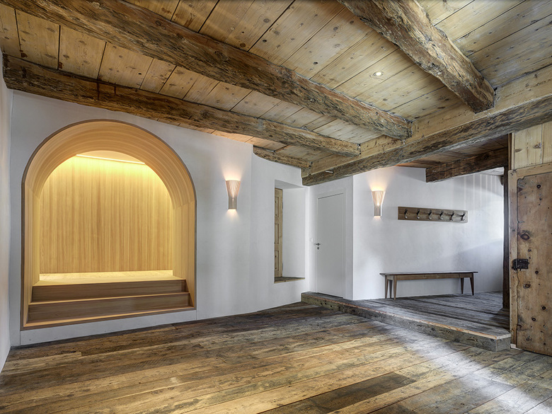 Das typische Engadiner Bauernhaus sollte saniert und erweitert werden. Der Respekt vor dem Bestand, die Auflagen des Ortsbildschutzes und die unmittelbare Nähe der Nachbarbauten bildeten hierbei die Entwurfsbestimmenden Rahmenbedingungen. Die bestehende Struktur wurde integral erhalten und originale Materialien wo immer möglich erhalten oder restauriert. Neue Elemente fügen sich sensibel ein und treten in einen spannungsvollen Dialog mit dem Bestand.