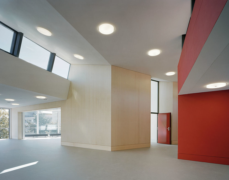 Die attraktive, barrierefreie Erschliessung und eine einfache Organisation ermöglichen eine sehr gute Orientierung und Zirkulation. Es werden differenzierte Aussenräume wie eine grosszügige Terrasse vor der Aula und ein kleiner Innenhof angeboten.