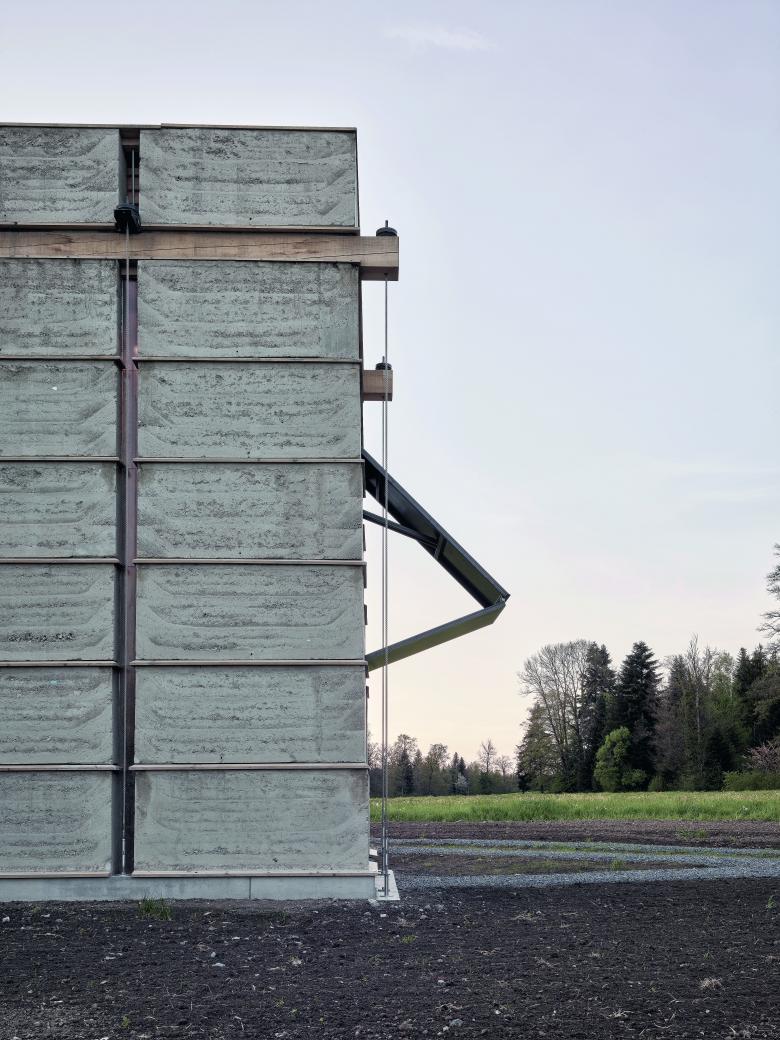 Das Bauen mit Lehmelementen ist heute in der Schweiz etabliert. Allerdings werden die Fugen zwischen den Blöcken, deren Grösse sich nach den Bedingungen von Transport und Montage richtet, üblicherweise nachträglich in aufwändiger Handarbeit verschlossen, sodass die Spuren der Elementierung verschwinden. In Cham werden diese zum Thema einer experimentellen Architektur, welche die Effizienz des Bauablaufs und die Stabilität durch konstruktive Neuerungen zu steigern sucht.