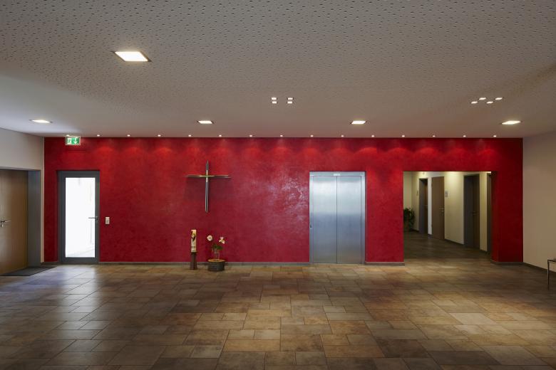 Als Ersatzneubau wurden entlang der Klostermauer ein neuer Klosterladen mit Gärtnerei und Buchhandlung sowie an dem neuen Kirchplatz ein Gästehaus errichtet. Das Gästehaus weist die Zimmer,eine Bibliothek und einen Stillen Bereich im Obergeschoss, die dazugehörigen Gemeinschaftsräume und die Küche im Erdgeschoss in zwei Baukörpern mit einem dazwischen liegenden Gemeinschaftstrakt aus. Farbige Akzente, die Glas- und Außenanlagengestaltung unterstreichen die besondere Atmosphäre des Hauses.