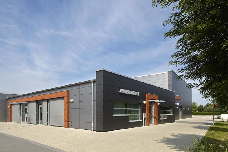 Zweifachsporthalle mit Jugendtreff und Stadtbibliothek