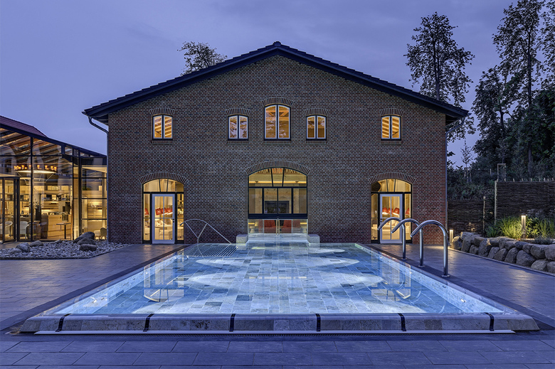 Den SPA-Bereich bilden die denkmalgeschützte Poststation und ein Neubau der dafür abgebrochenen Remise mit dem dazwischenliegenden Ausspannhof, in den eine Glashalle als Verbindungsbau eingefügt wurde.