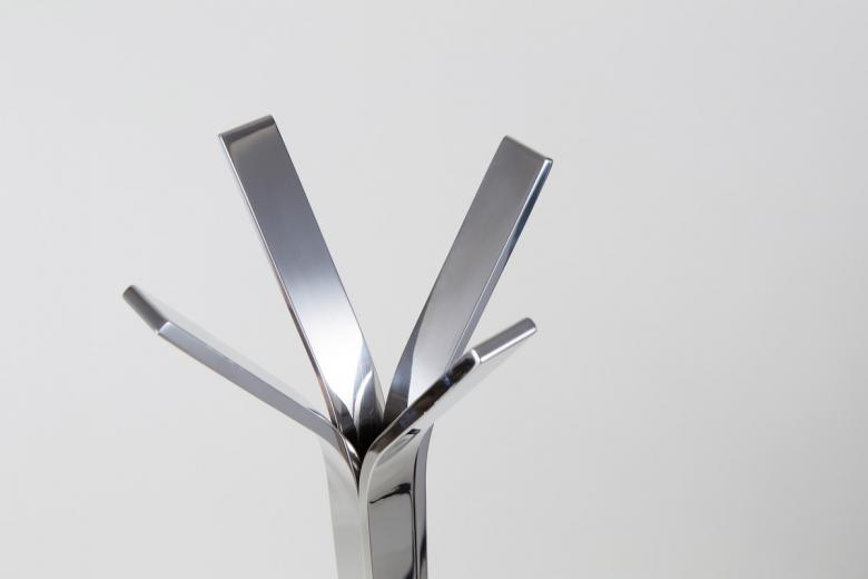 4FB is a coat hanger made of four solid aluminum flat bars (FB) secured together to form a rigid structure and function. My quest was to create an image of the combined bulk of flat bars spreading out and freeing itself from the top and bottom, and the beauty of the rationality with which it functions as a leg and a hanger at the same time. The design also takes into account the efficient packing that can be achieved by keeping the parts in a unified shape.