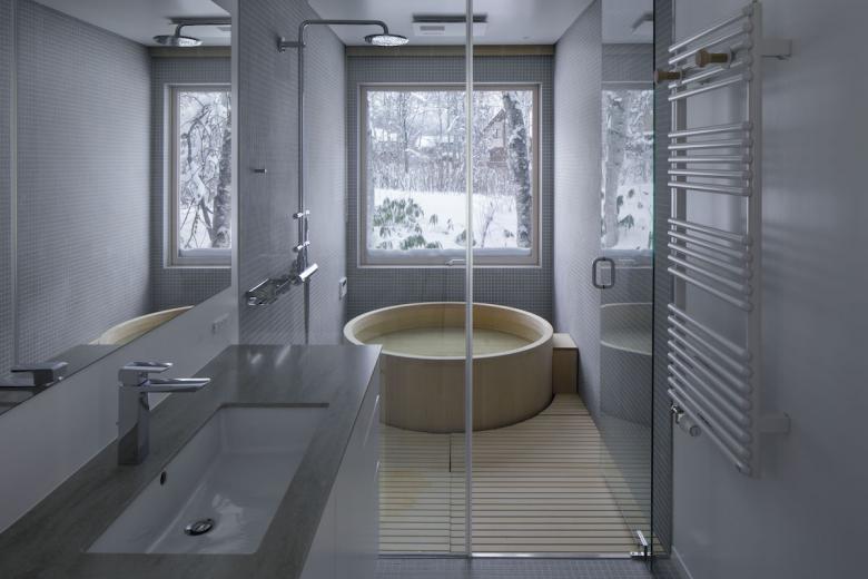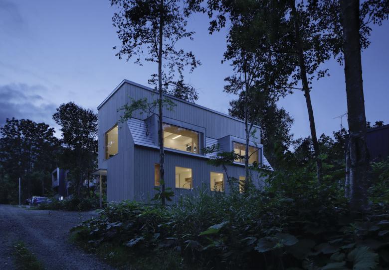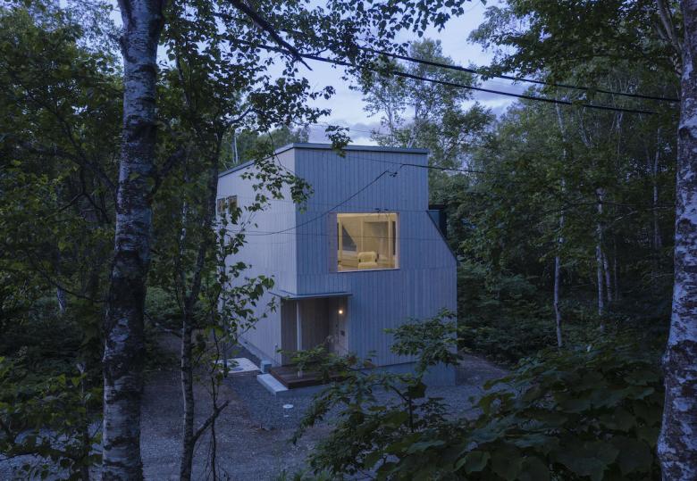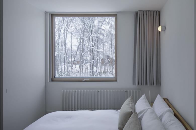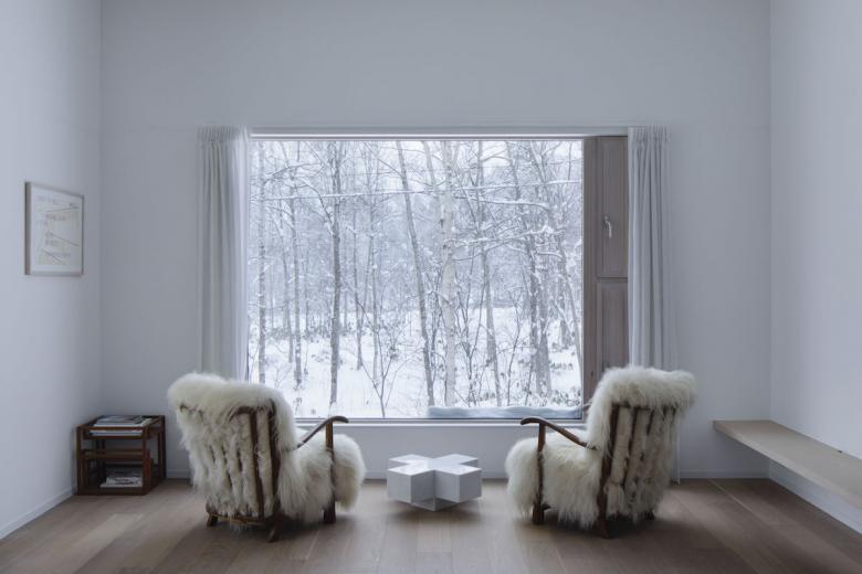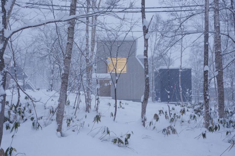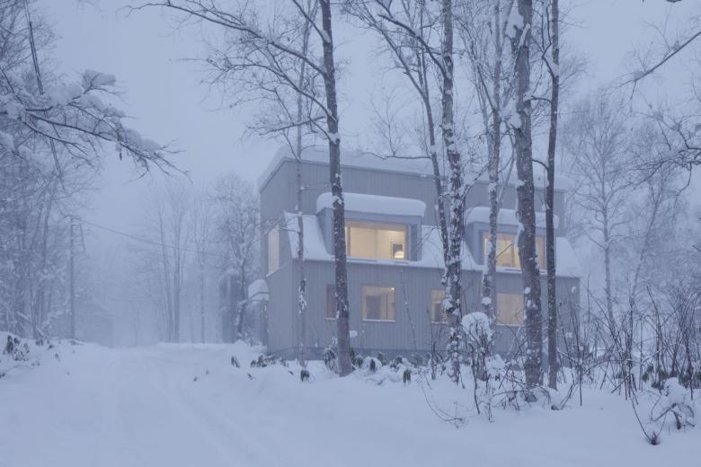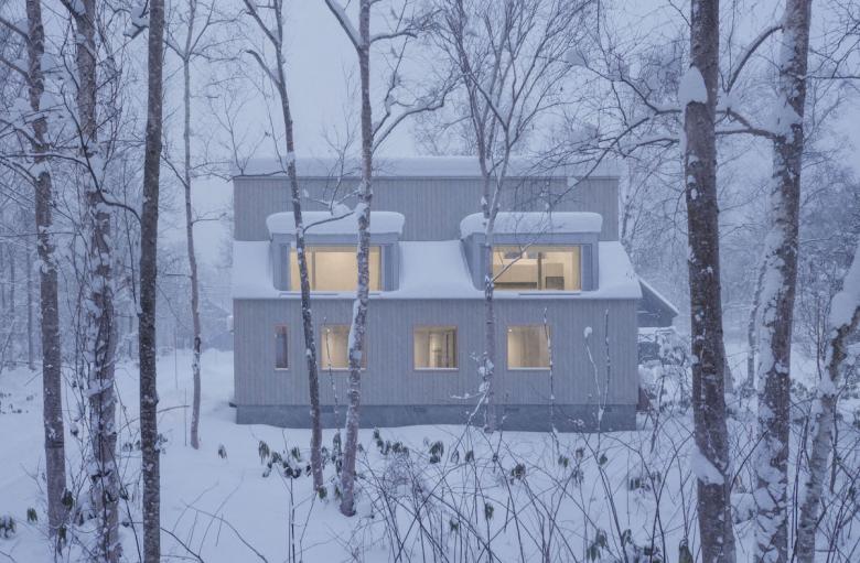 The client is a snowboard enthusiast who annually visits Japan from abroad for a short stay. He wanted to create a chalet where he could spend time with his family during his stay and also relax and socialize with his guests. The property was located in the Niseko area, a renowned ski destination, in the midst of a wooded area surrounded by white birches. The client requested maximum floor space possible for the site, a seating area for guests to relax, and an open living and dining area with a window looking out at the symbolic Mt Yotei.
