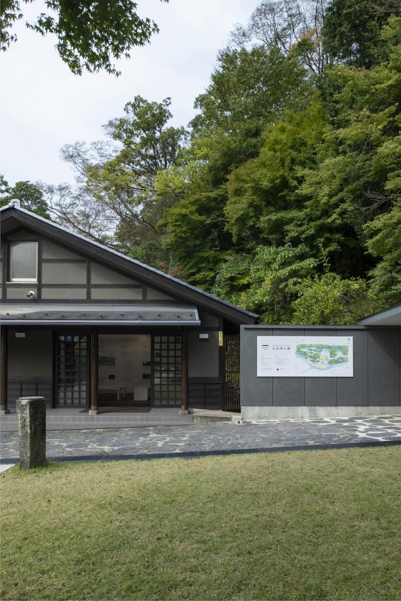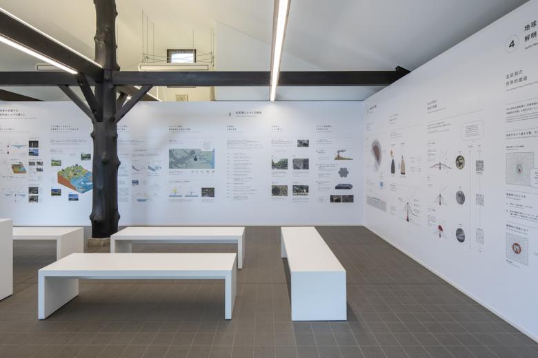 Other key upgrades included the change of the exterior wall of the existing facilities in the park from yellow to gray, and the change of the color of the staircase handrail from orange to gray, while maintaining the existing support columns. The ticket booth, which was newly required as a result of the change to a toll system, was constructed at the minimum necessary size, allowing nature to take the center stage. Phosphate-treated metal was used for the exterior walls of the ticket booth and for signs that were newly installed to unify the design, and similar to the concrete stage, the materials were selected to blend in with the environment over time. The building for rest and relaxation inside the park had display panels to explain the history and geological background of Genbu-do, however, these panels contained too much information for the size of the space, thus we restructured the necessary information with the help of experts and created a graphically readable situation.