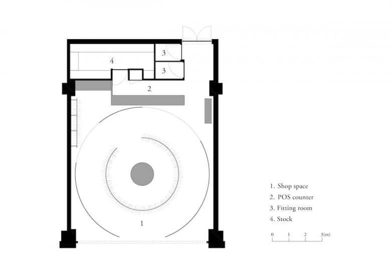 The concept for this project involves using a simple circular glass wall to highlight the collection line of “ISSEY MIYAKE”. The location of the project is a corner of the Chengdu SKP project in Chengdu, the capital of Sichuan Province in China. The design features a large circular glass wall and hanger rack layout within a simple square space. Various displays, counters, and fitting areas were placed around the outside of the circular space. By creating a clear and central space, the design emphasizes the brand’s message while also ensuring smooth movement and functional placement. To achieve this, a combination of mirror-finished frames and glass screens were used in a completely white space, with a focus on the ISSEY MIYAKE items themselves as the main element of the atmosphere.