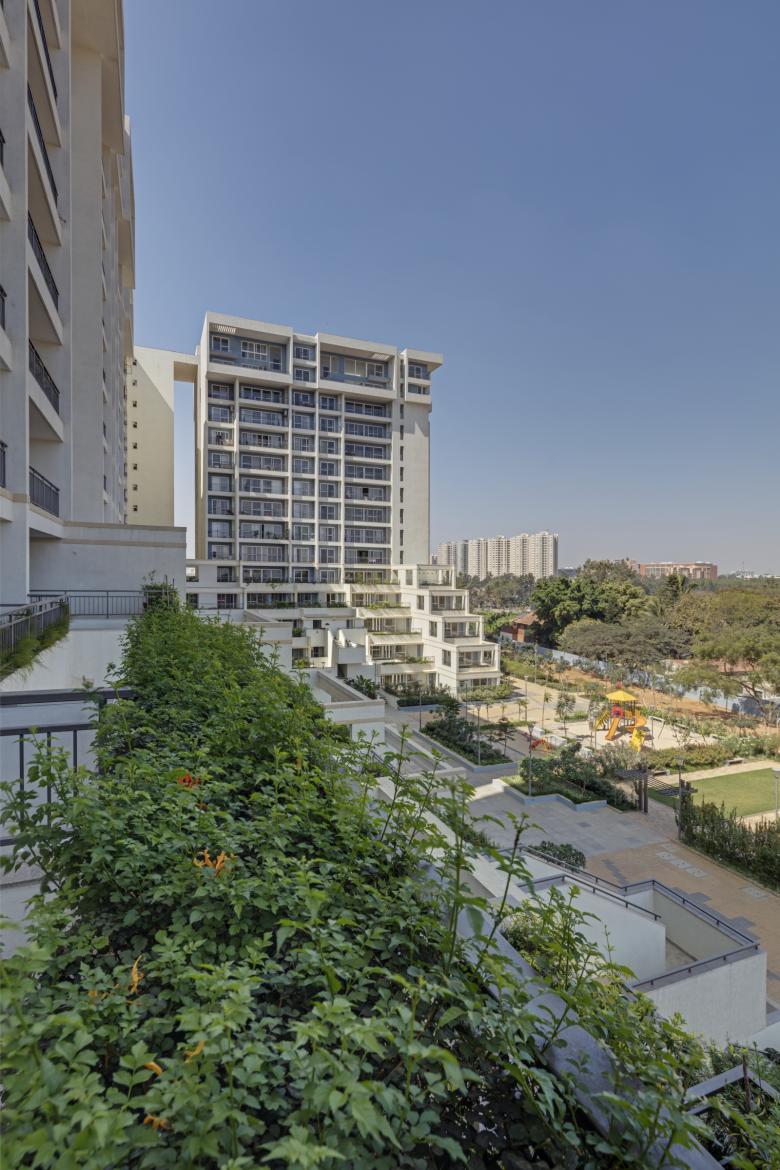 Terrace Homes are the stepped Units at the bottom five floors of fifteen floor high towers. These ultra-luxuries four-bedroom units come with Family, office, staff room and back yard. However, selling point is the green terrace decks which form extension of the living & bedroom spaces. One can experience a sense of independent villa in these units having strong connection to green and sky.