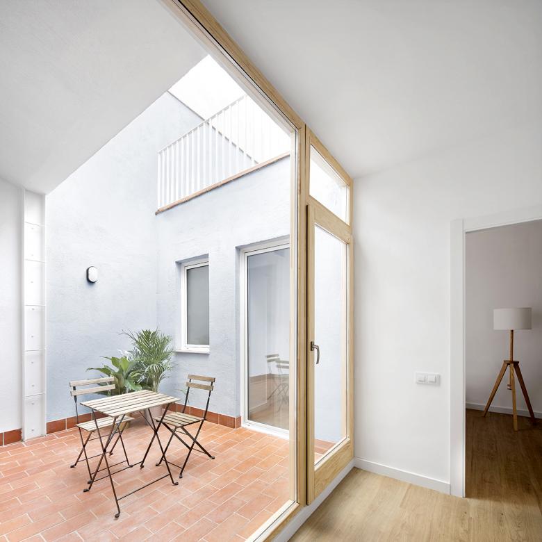 Refurbishment of three apartments with terraces, using minimum cost construction criteria. With integral renovation of the distribution to improve lighting and natural ventilation.