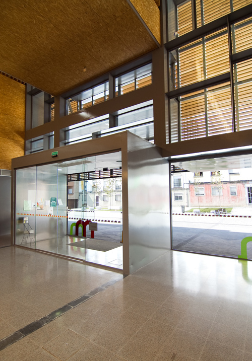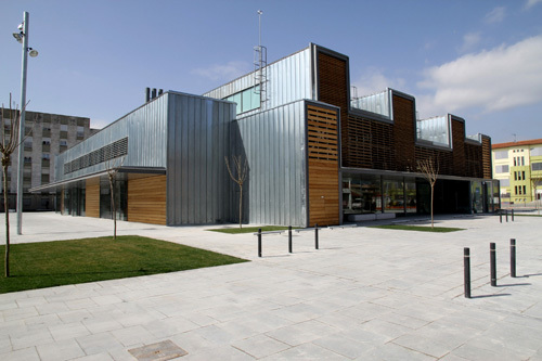 A continued zinc skin unifies roof and facades and it folds generating different highs that allow light entry and the all building ventilation. This skin folds itself creating porches to the main entrances. Fragmented cover dialogs in height with environment’s buildings and hide its big scale.