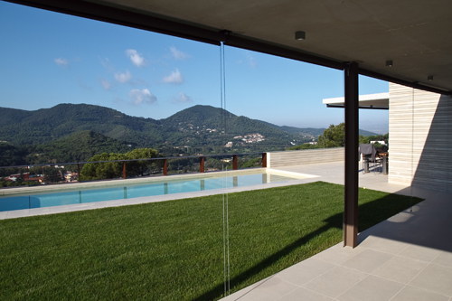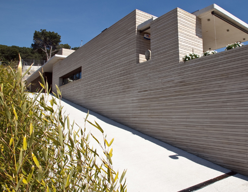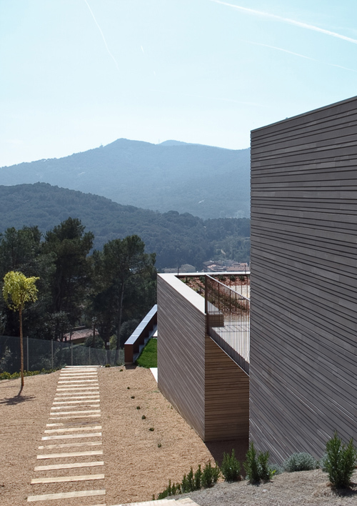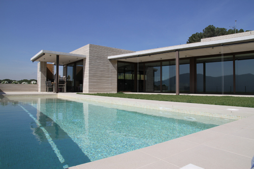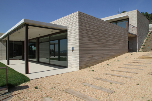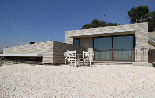 The house was finished with Vinaixa’s stone with three different wide, used like a brick facade, reinforcing the horizontal house idea and achieving a perfect integration with the existing granite sand. Lateral facades are opaque contrary to south facades, where all rooms are faced to, these are full glazed and protected from the sun light by large concrete porches. The garden is treated with native vegetal species to integrate the house in the Mediterranean forest environment.