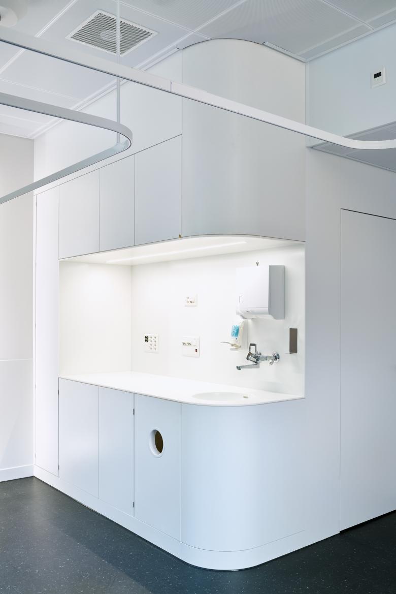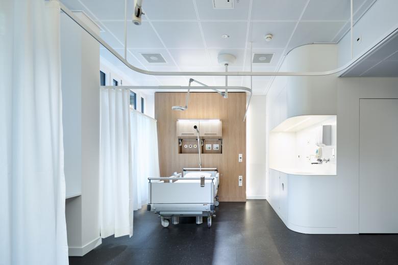 Ein Sectiozimmer erfüllt höchste Anforderungen bez. OP-Raum mit entsprechend technischer Ausrüstung und Reinraum-Qualifizierung. Gleichzeitig aber fordert die Geburtsabteilung Räume mit hoher Aufenthaltsqualität; gerade während der hektischen Geburtsphase ist ein der Situation angepasstes architektonisches Konzept elementar.