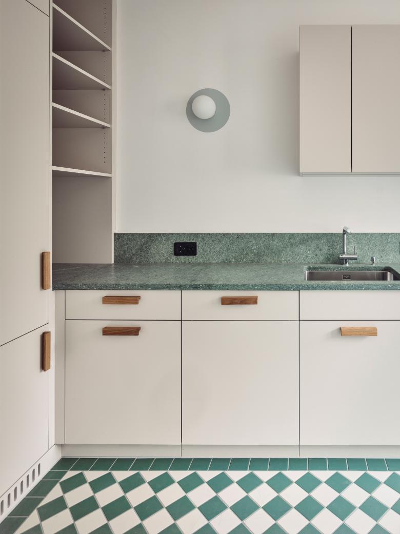 Totalsanierung von zwei Wohnungen in einem Haus aus dem späten 19. Jahrhundert. Anpassung der inneren Struktur, Ersatz von Küchen und Nasszellen.