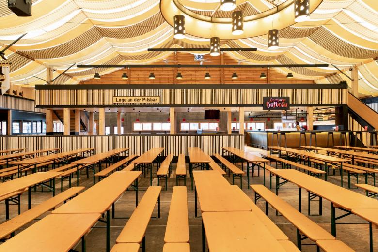 Göckelesmaier GmbH, Gestalterische Leitung von 2009-2023, Detail-, Interiorplanung und Realisierung der Festzelte auf dem Cannstatter Wasen und Frühlingsfest in Stuttgart, Gestaltung zweier Hauptfassaden inklusive aller VIP-Logen