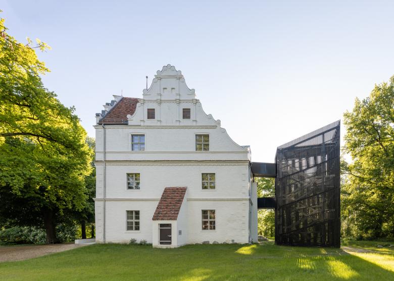 Ab 1575 erbaut, gilt das Bauwerk mit seinen markanten Schmuckgiebeln als eines der wenigen noch erhaltenen Herrenhäuser der Renaissance in Vorpommern, stand seit den 1990er Jahren jedoch leer und war dem Verfall preisgegeben, bis es im Herbst 2020 nach dreijähriger Renovierungsphase wieder eröffnet werden konnte und heute als Museum, Restaurant und Veranstaltungsort genutzt wird.