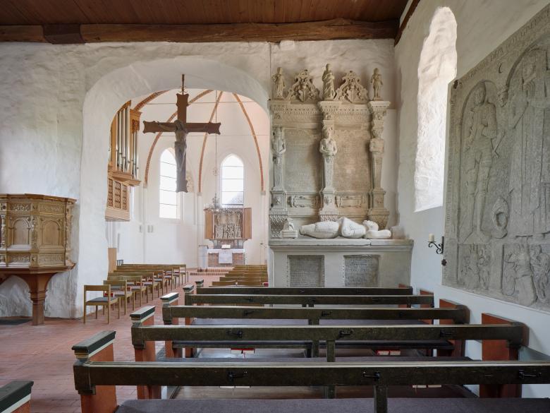 Ihr markanter, backsteinerner Kirchturm und das Langhaus aus Feldstein bieten einen Kontrast zur gotischen Architektur des Altar- und Chorraums, der den Blick nach oben in das Licht öffnet und das Streben nach spirituellen Horizonten symbolisiert. An der Nord- und Ostseite schließen sich Grabkapellen ansässiger Adelsfamilien an.