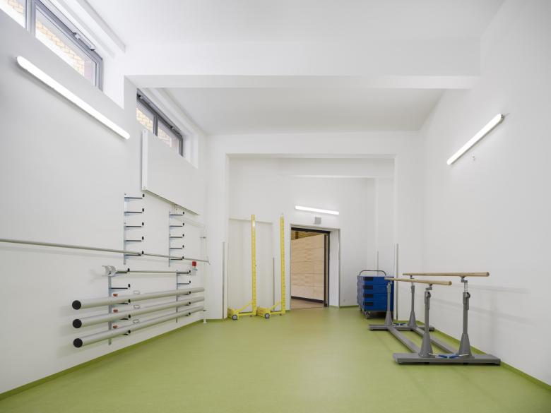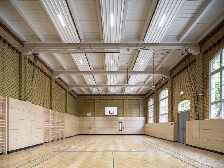 Heute nutzen sowohl die Gustav-Meyer-Schule als auch Vereine die Turnhalle für vielfältige sportliche Aktivitäten. Moderne Haustechniksysteme erfüllen aktuelle energetische Standards, ohne das historische Erscheinungsbild zu beeinträchtigen. Die Sanierung schuf ein zeitgemäßes, angenehmes Umfeld für Schulkinder und Sporttreibende.