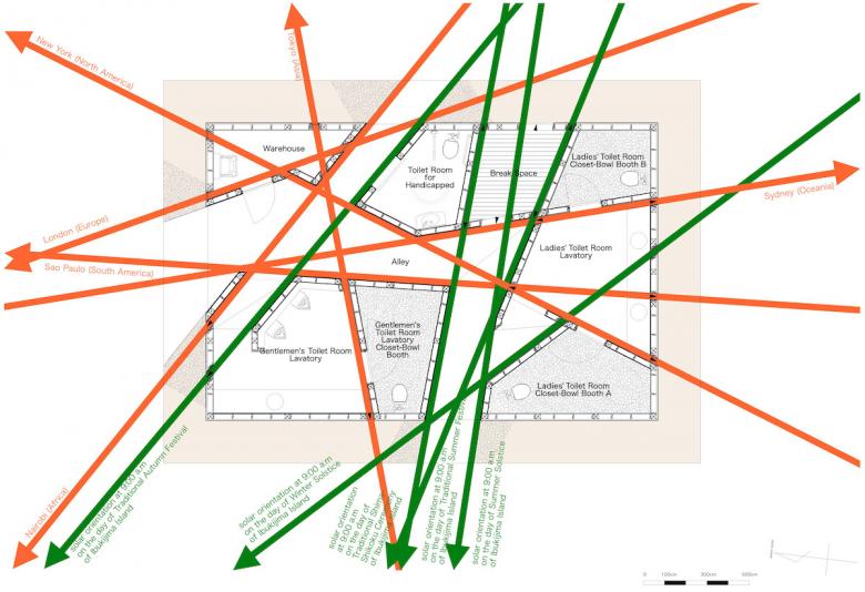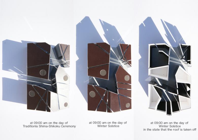 Five of the eleven are time-related light slits. According to the direction of the sun at 9 am on three Traditional events and Summer Solstice and Winter Solstice Day, slits pass through the building. Once a year, at that time, a ray of light passes through the architecture, informing the islanders of the arrival of the season. It is a mechanism that shows the identity of the island in time, that is, the coordinates of the island in time.
