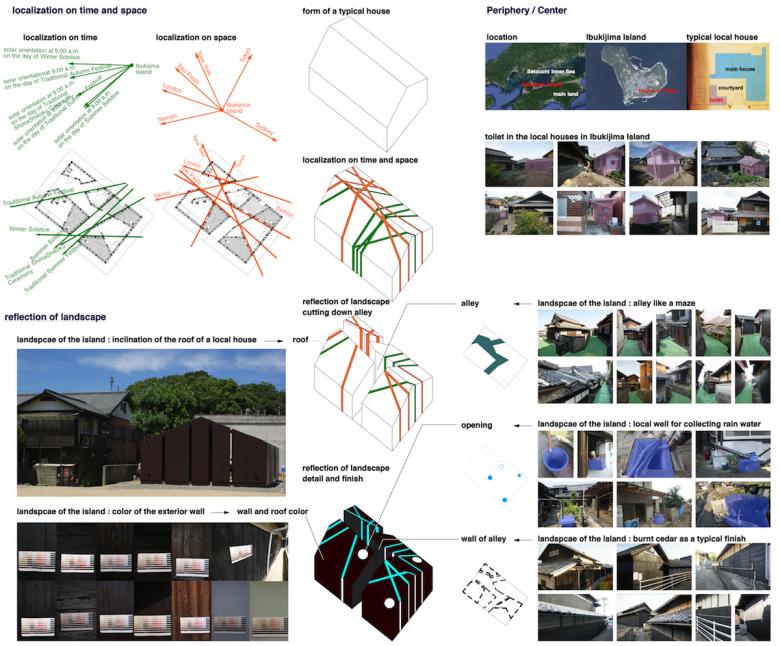 House of Toilet tends to change the peripheral space into the center of Ibuki-jima Island and to give intensity to Ibuki-ima Island that has been used as the periphery.