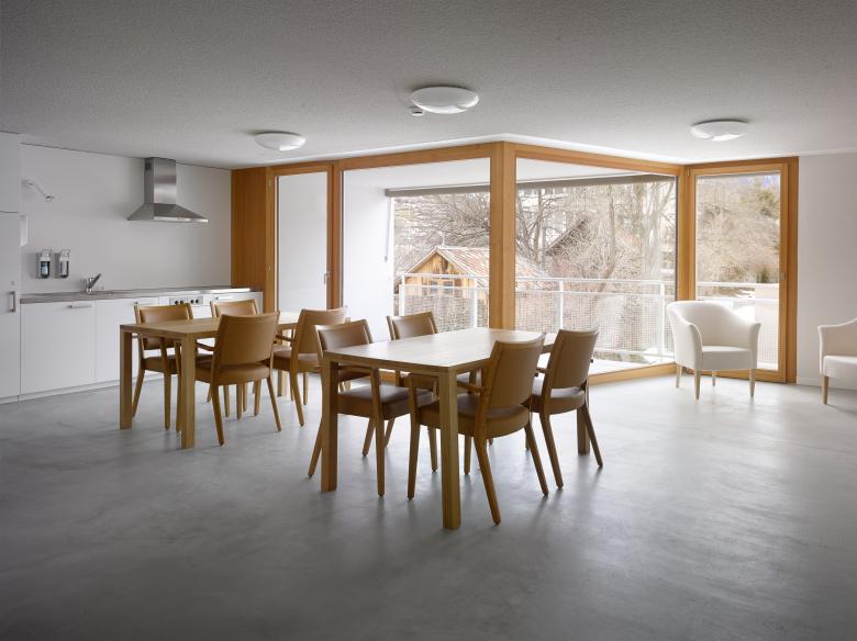 angebotenen Plätze während der Bauzeit um ca. 10% reduziert wurde, stellte die Erstellung unter laufendem Betrieb eine grosse Herausforderung dar. Ein Provisorium im Innenhof wurde so platziert, dass es als Ergänzung der Hauptbaus sowohl während der ersten als auch während der zweiten Etappe dienen konnte.