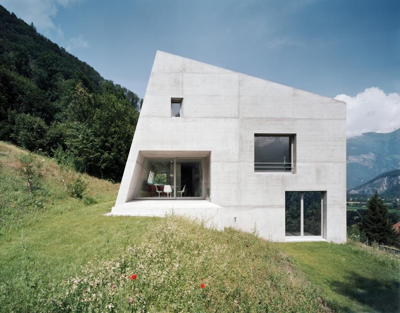 Die Verankerung am Ort sowie Auseinandersetzung mit dem Thema des Bauens am Berg, insbesondere der präzisen Einbettung des Volumens im steilen Terrain, bestimmten den Entwurfsprozess, welcher schliesslich zu dem sowohl im Grundriss als auch im Schnitt trapezförmig verzogenen, prismatischen Baukörper des Einfamilienhauses Gartmann führten.