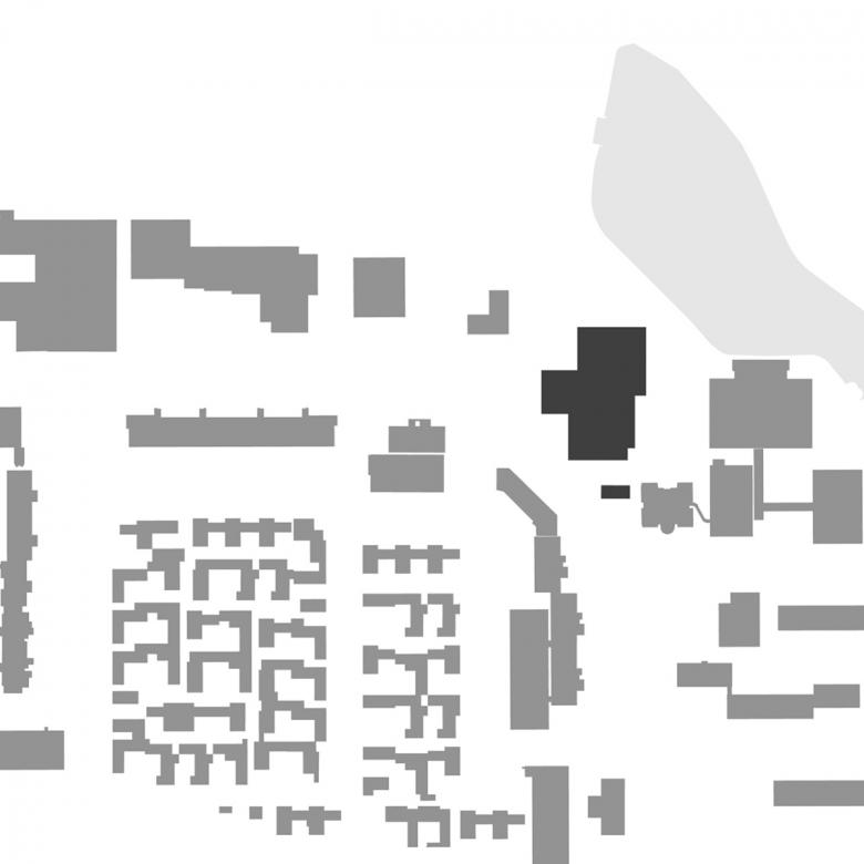 Der Erweiterungsbau fügt sich als eingeschossiger „Teppich“ in die parkartige Situation ein. Lediglich die Technikzentrale im Obergeschoss stellt einen punktuellen Hochpunkt dar.