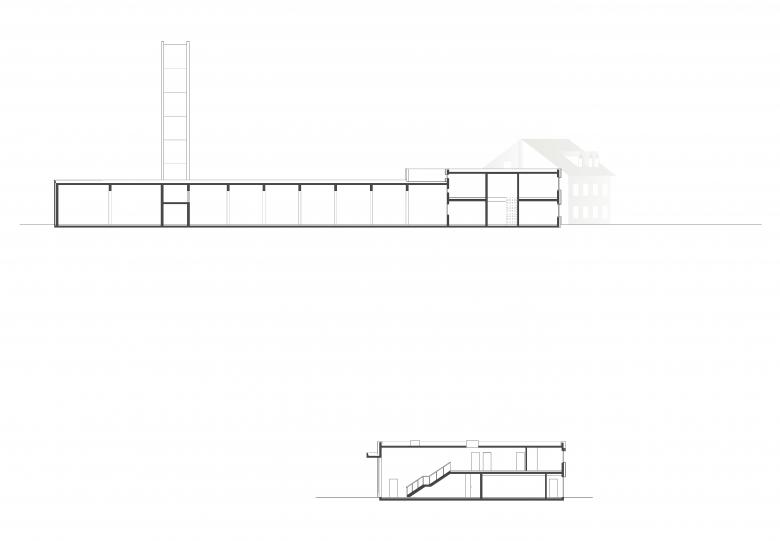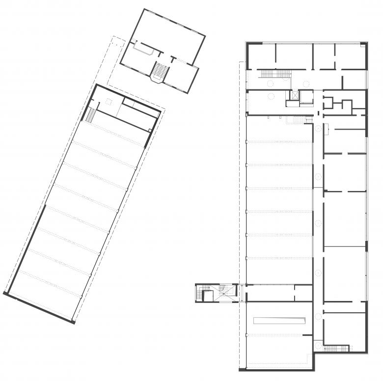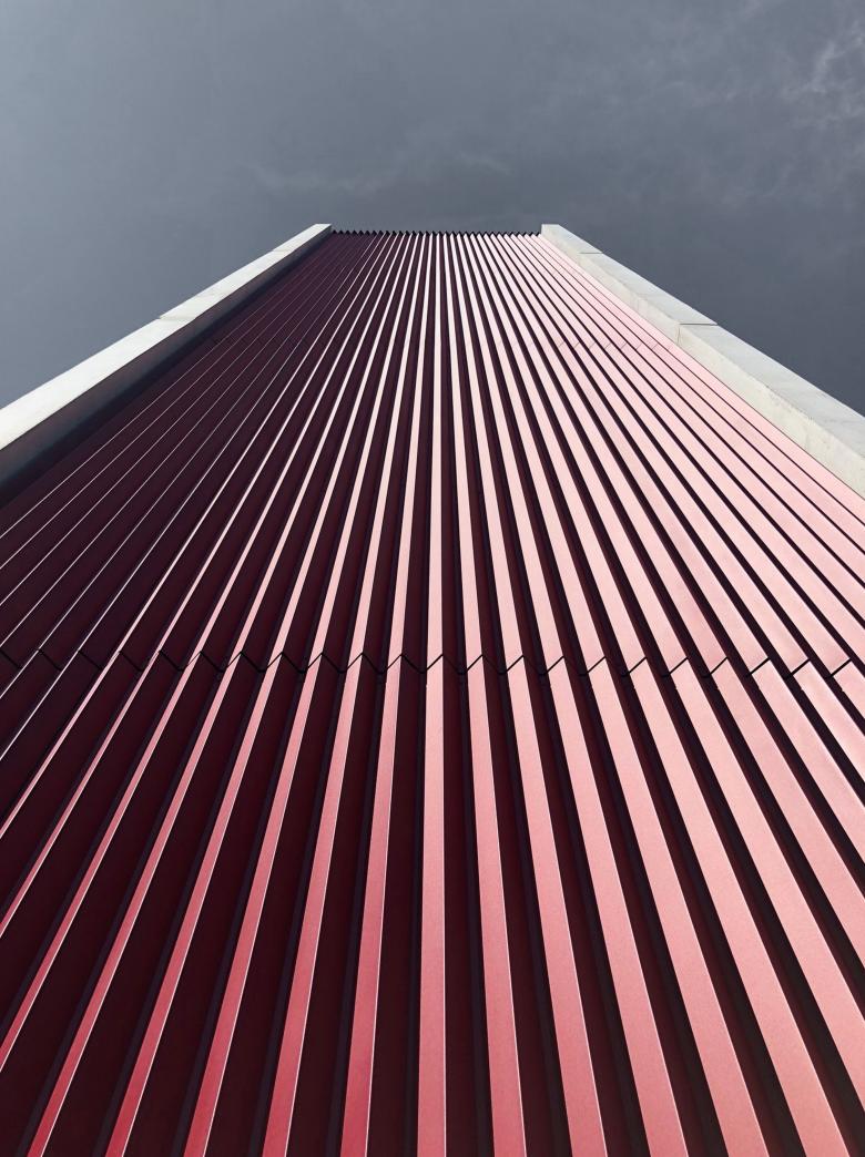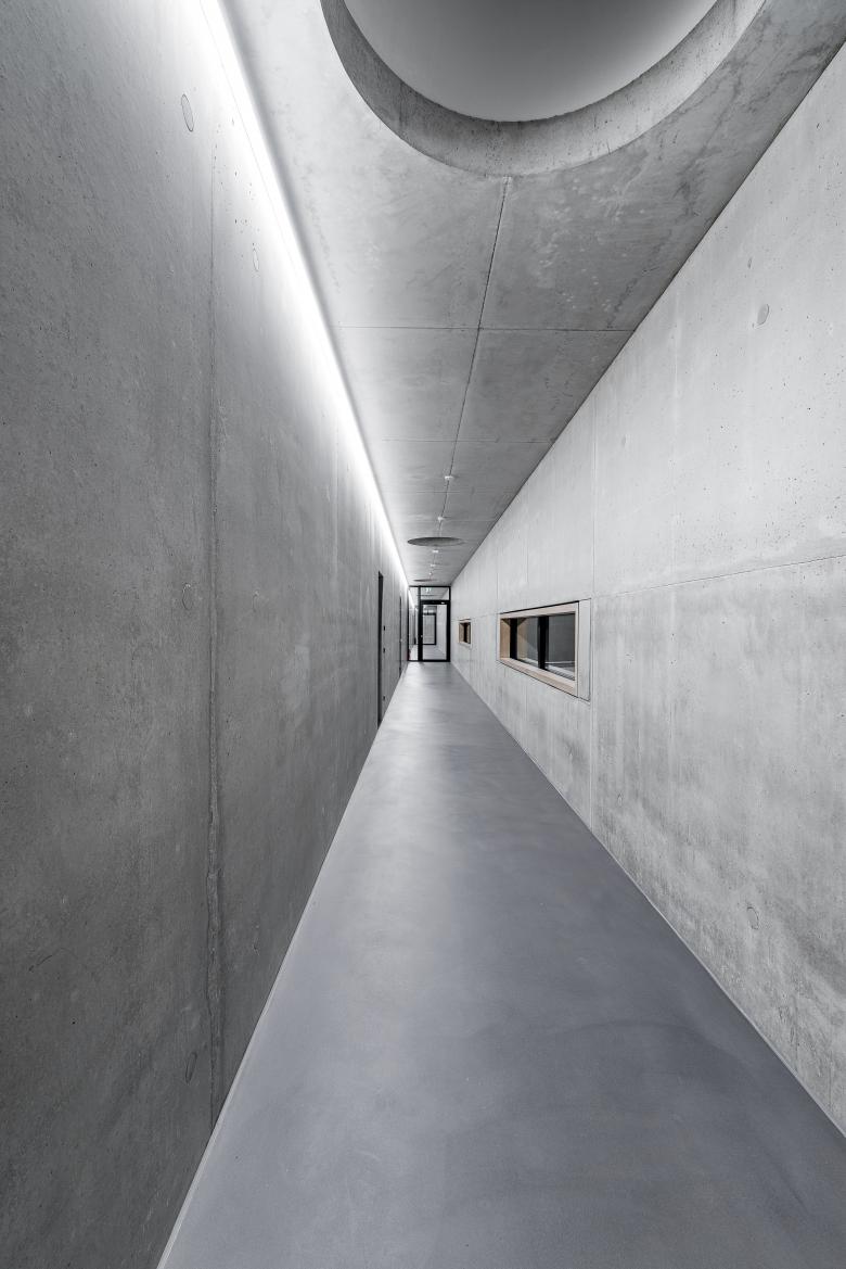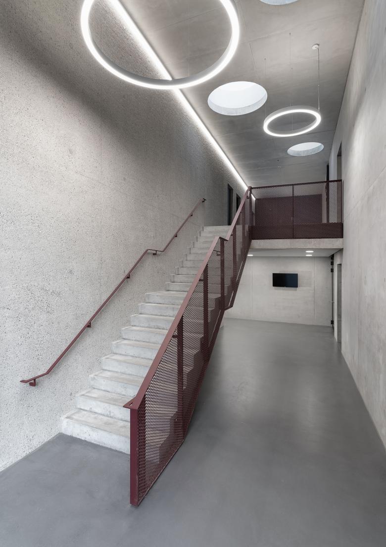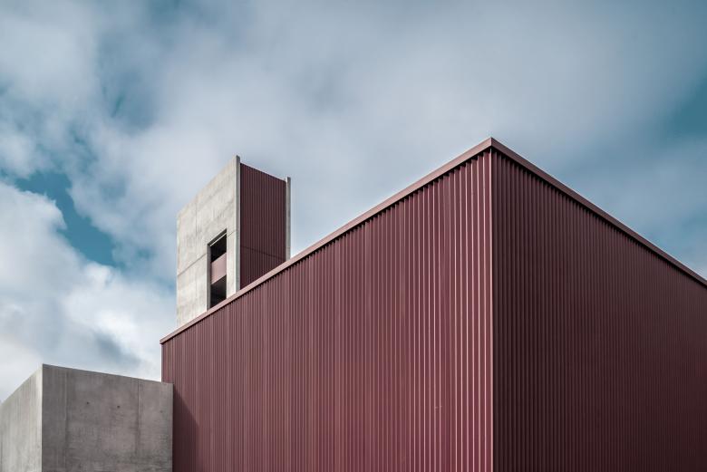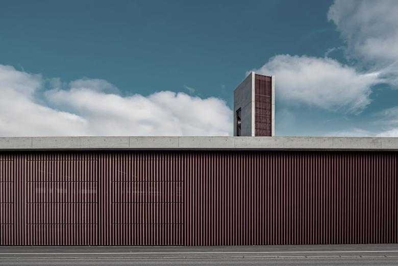 Die einzelnen Nutzungsbereiche sind deutlich ablesbar, verbinden sich aber durch eine einheitliche Materialität zu einem Architekturensemble. Die geschlossenen Außenwandflächen mit einer profilierten Metallbekleidung bilden einen spannungsreichen Kontrast zu den großflächigen Verglasungen und Toren. Eine funktionale sowie gestalterisch überzeugende Lösung. Die Realisierung erfolgte in drei Bauabschnitten.