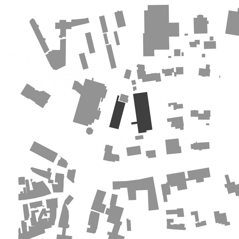 Die Neubauten ergeben zusammen mit dem bestehenden Kopfbau ein Ensemble, das sich um einen geschützten Innenhof lagert. Mit der Gebäudestellung werden die beiden Richtungen der Umgebungsbebauung und der Neugablonzer Straße aufgenommen. Der Schlauchtrocken- und Übungsturm verdeutlicht als Hochpunkt die Nutzung des Ensembles.