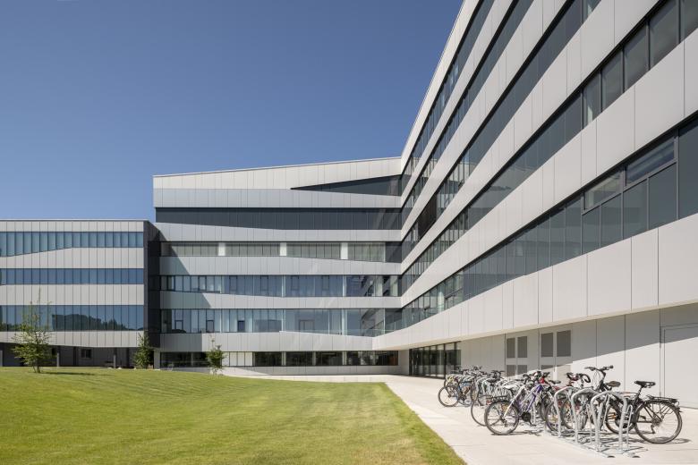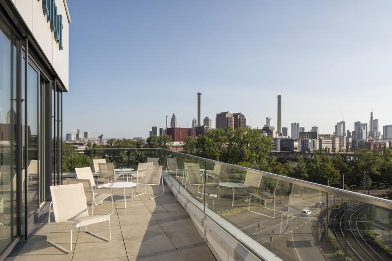 Das Ernst-Strüngmann-Institut (ESI) ist ein rechtlich selbstständiges Institut auf dem Gebiet der Grundlagenforschung mit Sitz in Frankfurt am Main und steht in enger Kooperation mit der Max-Planck-Gesellschaft (MPG). Der 6-geschossige Neubau zeichnet sich durch ein klares, prägnantes und ruhiges Gebäudevolumen aus, welches jedoch durch das Verschwenken des Eingangs- und des Dachgeschosses aus der Flucht der Obergeschosse entlang der Straße eine Differenzierung des Volumens erfährt. Durch dieses Verschieben wird einerseits ein erweiterter Vorbereich zur Straße erzeugt und so der Eingangsbereich betont, andererseits mindert das zurückspringende Dachgeschoss die Gebäudehöhe in Richtung Straßenkreuzung und Main.