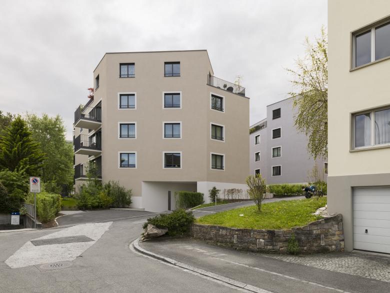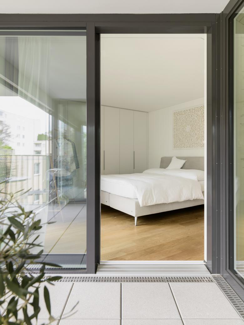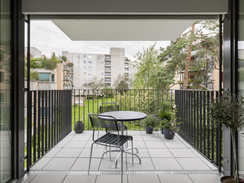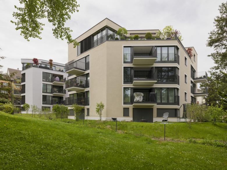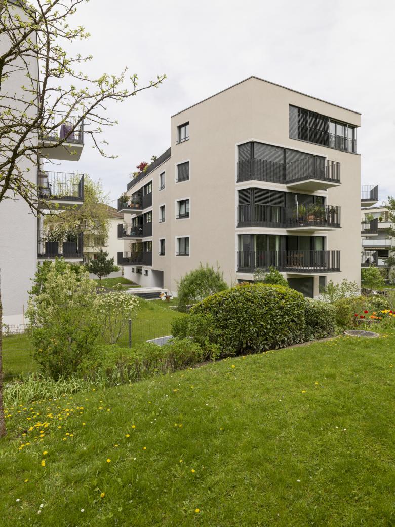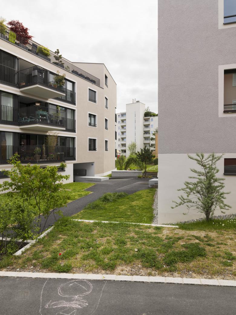 Die organische Form der Gebäude ergibt für die verschiedenen Wohnungen jeweils eine Ausrichtung zu drei Fassaden, was eine helle und einladende Wohnatmosphäre schafft. Das Herzstück der Wohnungen sind die eingezogenen Loggien, welche die Wohnräume visuell durch den Aussenraum verbindet. Zudem erstellen die herausstehenden Balkone die Verbindung zum städtischen Grünraum und verbinden so Aussenraum mit Innenraum. Die Individualräume sind für das Ermöglichen von optimalen Möblierungsmöglichkeiten immer im rechten Winkel zur Fassade angeordnet.