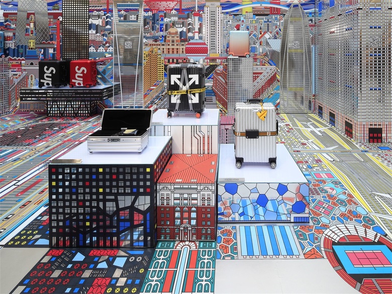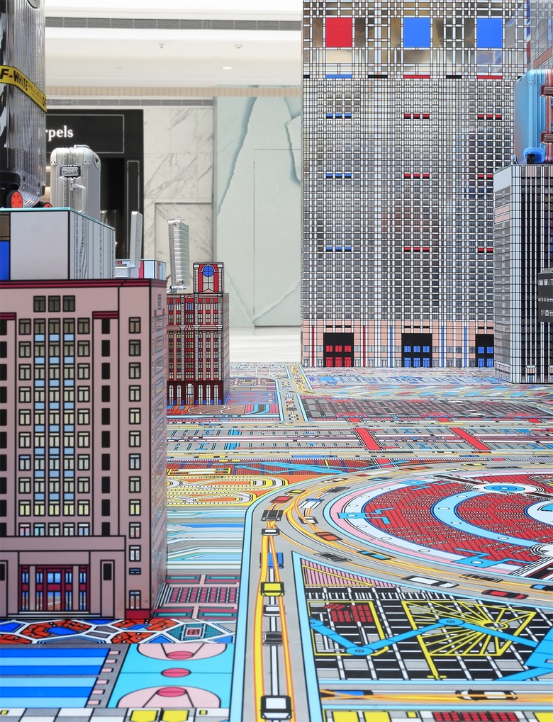 The installation Pack the Suitcase · Unfold the City for the renowned suitcase label RIMOWA for its brand exhibition Beyond the City is another experiment by DAS to integrate architectural drawing with space design.