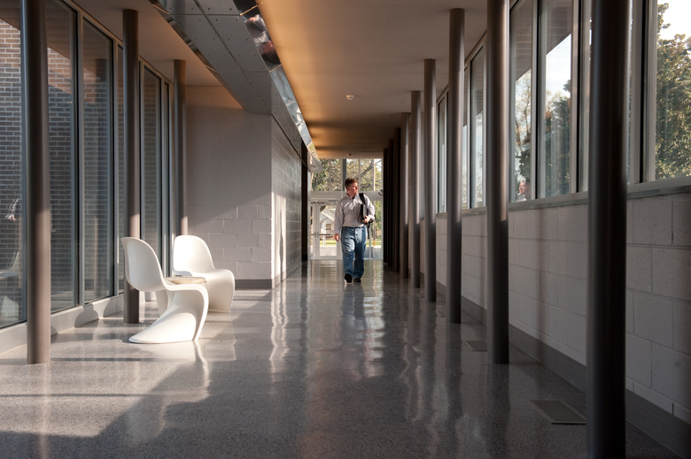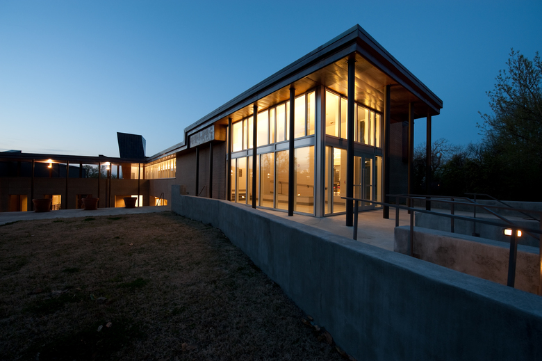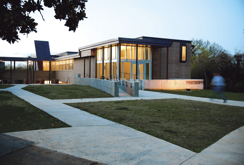 This project creates a space for education, community programming, and events. A joint project of Coahoma County, Coahoma County Community College, and Delta State University, the complex is a culmination of the needs of the three entities, providing a 150-seat conference center, classrooms, distance learning facility, resource center, demonstration kitchen, and administrative offices. The existing gym was transformed into a new conference center, and a new 12,700 square foot classroom building was added to the complex. Sited around the historic Cutrer Mansion, the ensemble overlooks the bluff from the city to the river bottom lands, framing the historic mansion and linking the complex to the city grid. The project celebrates the community’s diversity and the region’s landscape, culture, blues heritage, as well as its full and complex social history.