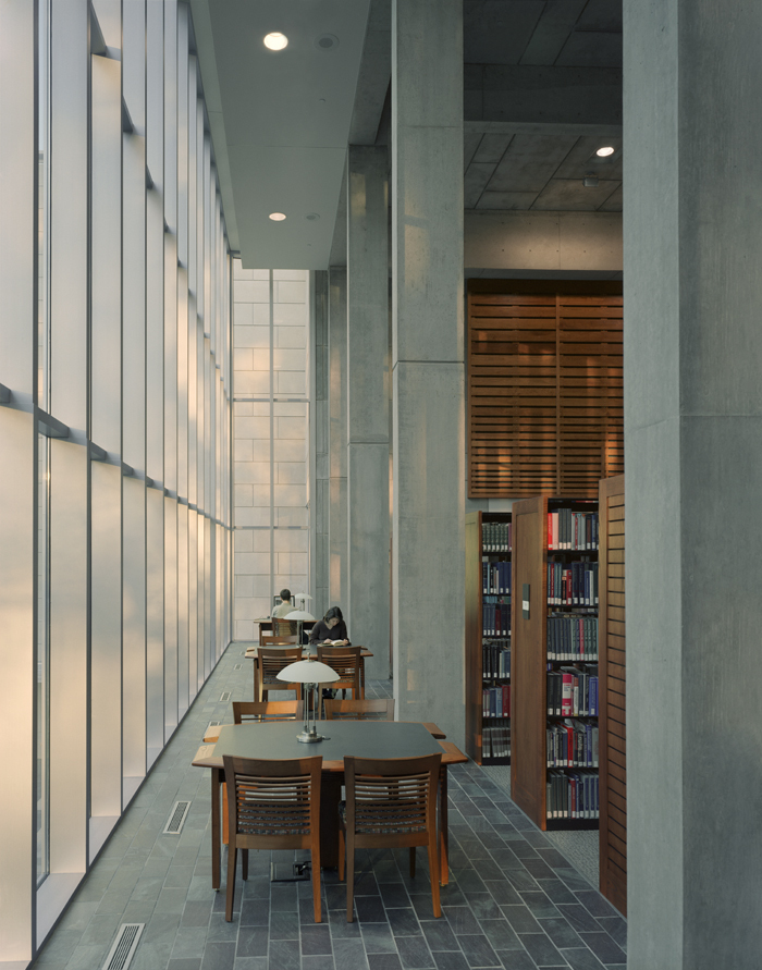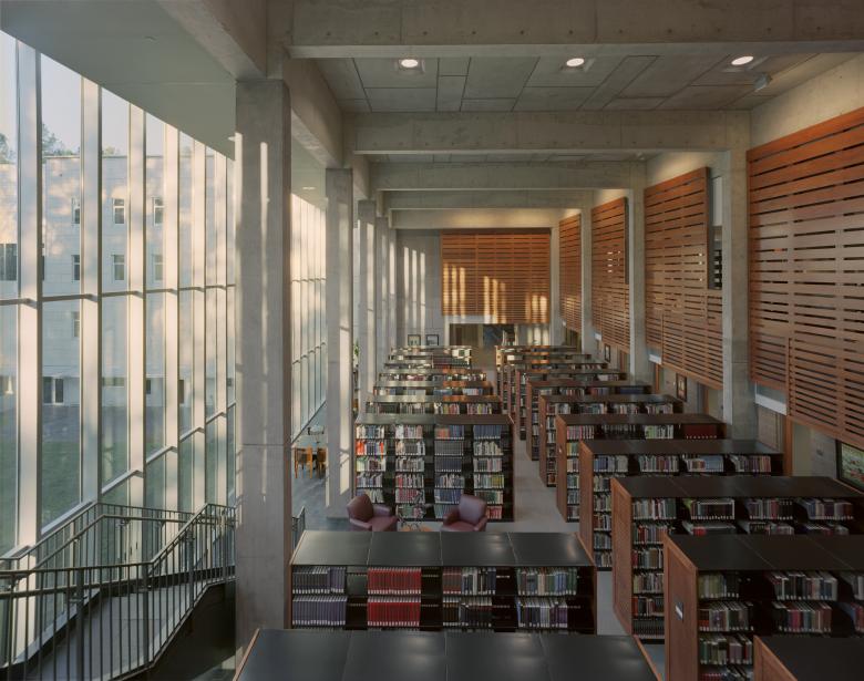 The Mississippi Library Commission is both a lending reference library and a service institution supporting libraries all over the state. The building houses all the divisions of the Library Commission including the library for the reading impaired, the Mississippi author first editions collection, the state’s reference library, and patent and trademark records. The design of the 60,000 square foot building is organized by multiple public gathering spaces, including the entry lobby, gallery, main public meeting room, the northern-lit main reading room, and an outdoor green. Each of these centers are linked by an indirect pause, and the circulation strategy invites exploration and browsing. The building stakes its place on the site with a shadow plinth, and its exterior skin weaves southern highlights and shadows into an ever-changing surface that seems alive, breathing in the phenomena of its environment. The interior design was completed as an integral part of the project including all loose and system furnishings, shelving, artwork, and accessories for the building.