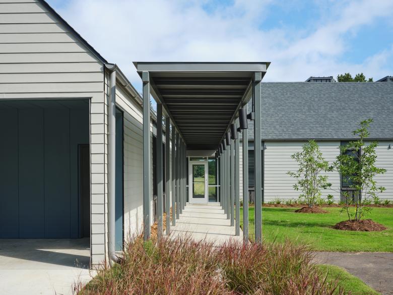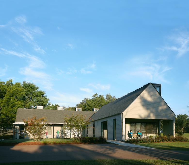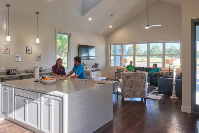 In support of its mission to be a model residential community for adults with intellectual disabilities, the Baddour Center completed a comprehensive master plan in 2017 for the enrichment of the residents’ quality of life, upgrades to campus appearance, strengthening of the institution’s financial health, and enhancing campus operations. The first project of the Master Plan included the design and construction of two new 3,500 square-foot homes, with five residents each, that employ a transitional model of care. In this model, residents live mostly independently with some daytime support from a Direct Support Professional (DSP). The new transitional homes would be sited near two existing group homes on the south side of campus.