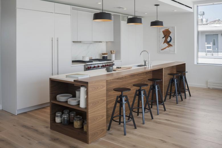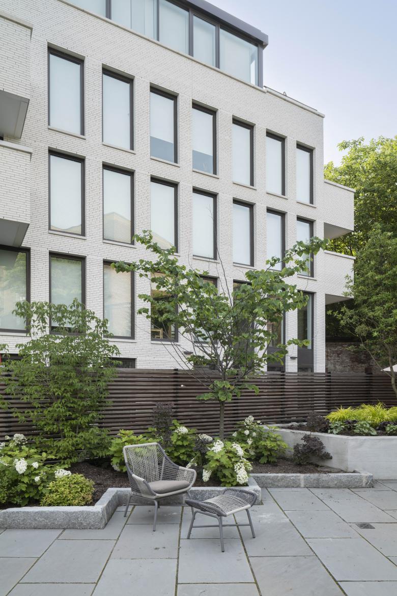 At the heart of 280 St. Marks Avenue is over 5,000 square feet of communal space, featuring a front lobby and a double-height residents’ lounge with its custom-built communal table and separate pantry kitchen. The 8’ oversized windows and doors open directly onto the serenely landscaped 2,945-square-foot backyard garden designed by Patrick Cullina. Additional amenities include a fitness room, bike room, common roof deck with grill, and underground parking.