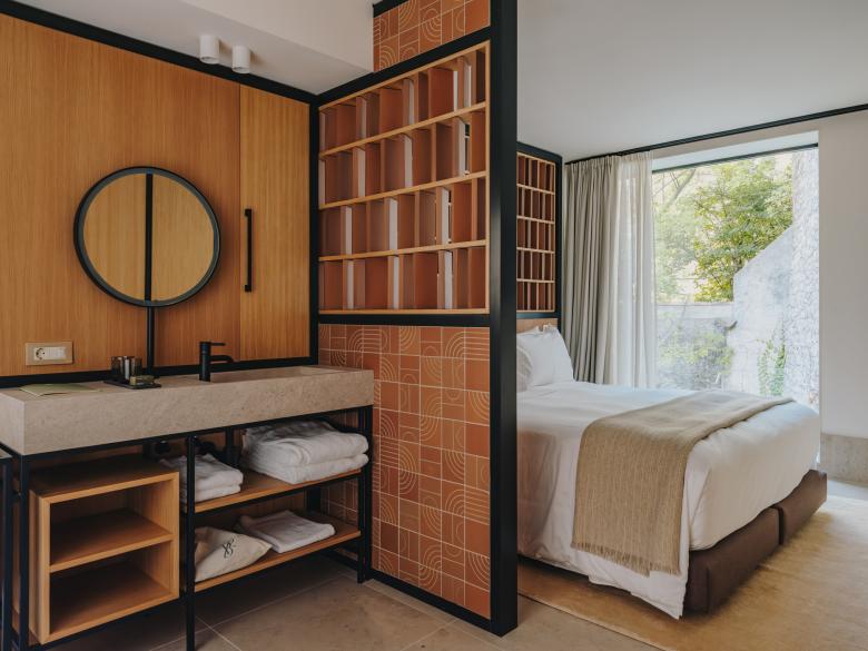Como contraste, se incorporan elementos nuevos y coloridos que aportan vitalidad, como espacios de colores vibrantes y desenfadados, mobiliario ecléctico y arte contemporáneo. Esta combinación busca crear un intrigante y fresco contraste con la arquitectura antigua
