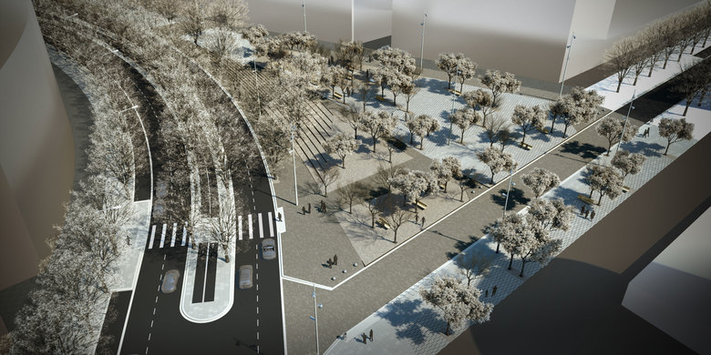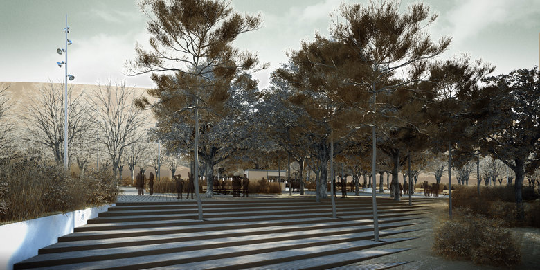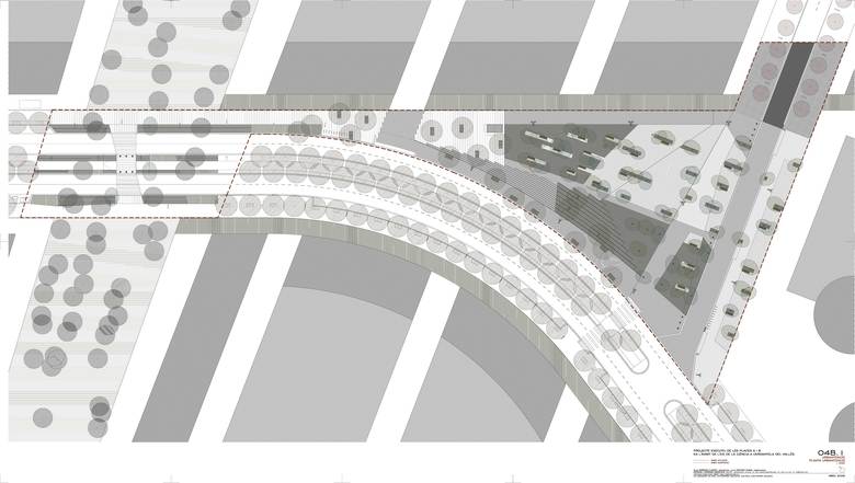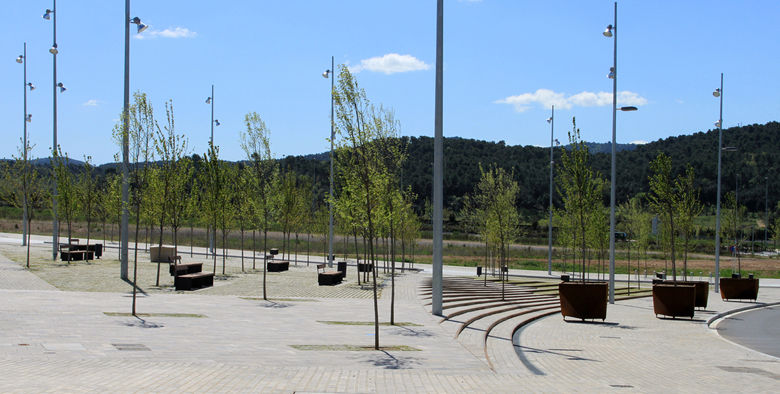 El projecte comprèn l’àmbit de les places a i b contemplades en el planejament,i el sistema de creuament d’un costat a l’altra de l’eix de la ciència. L’objecte del projecte és de donar una continuïtat física i visual entre les places i els elements paisatgístics interns – parc - i externs – territori -, reforçar la idea de sistema doble d’espais públics centralitzadors d’activitats dins l’àmbit general del centre direccional i de proporcionar uns espais útils i flexibles a la diversitat de funcions que s’hi pugui establir en diversos horaris i dies.